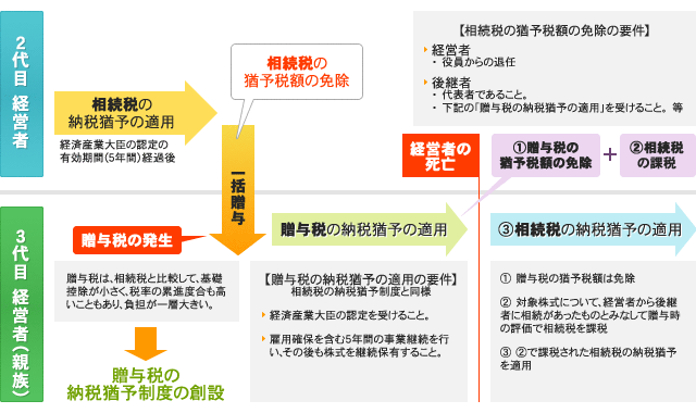事業承継税制とは、中小企業の相続において、相続税負担によって事業継続に支障が出ないように、原則として課税を繰り延べる仕組みです。